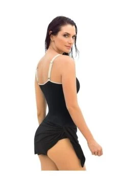 Vestido De Baño Entero Con Falda Multiusos Y Control De Abdomen – Swimwear Negro Leonisa