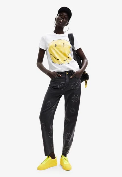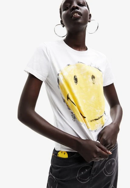 Un gran Smiley con efecto desgastado decora esta camiseta de manga corta y regular fit. Somos un miembro orgulloso de la Better Cotton Initiative. Al comprar prendas de algodón de Desigual estás apoyando un cultivo de algodón más sostenible.