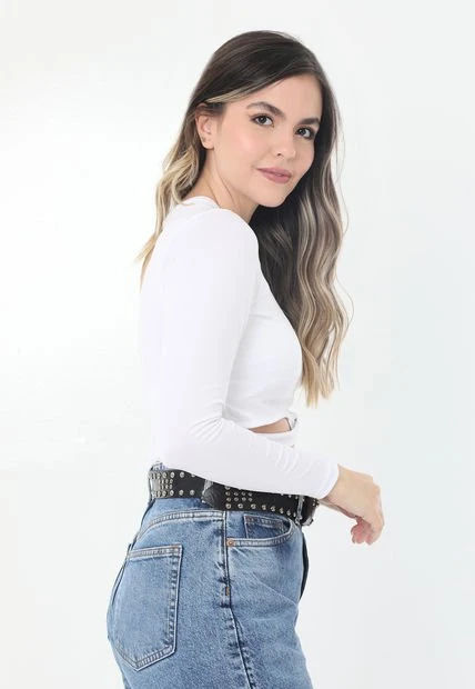 Camiseta de mujer manga larga, cuenta con frente inferior con tiras cruzadas, cuello redondo y silueta ajustada. Elaborada en tela poliéster tejida de punto para una mayor comodidad, también cuenta con detalle con tiras cruzadas en la cintura para darle un toque de sofisticación y versatilidad. ¡Luce fabulosa en el día y la noche!