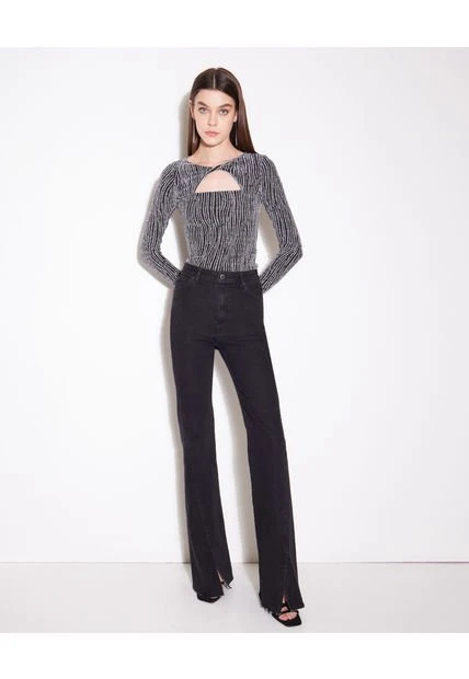 Camiseta Para Mujer Manga Larga, Cuello Redondo, Con Cut Out Y Torción En El Pecho. Color: Negro Composición: Nailon 65% Fibra Metálica 30% Elastano 5% .Instrucciones De Lavado: No Dejar En Remojo. Lavar En Agua Fría Separadamente. No Usar Blanqueador. No Retorcer. Secar A La Sombra. Plancha Tibia.