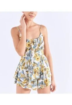 Descripción del producto: enterizo short para mujer, diseño con detalle fruncido en delantero y de anudar en escote espalda, ajustable en cintura trasera y tiras ajustables