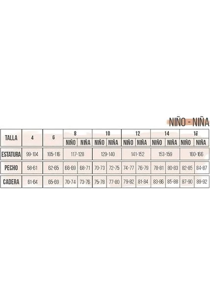 - Te recomendamos consultar la tabla de medidas para que escojas la talla correcta.
