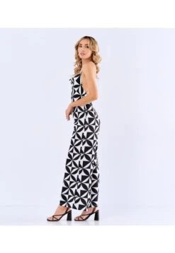 -Descripción:enterizo para mujer largo con estampado geometrico, cuello drapeado con tiras removibles en piedreria. señido al cuerpo bota ancha, una prenda ideal para tu dia a dia.