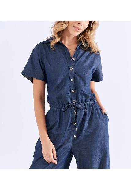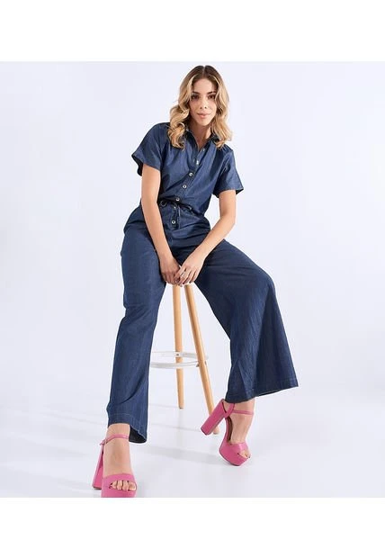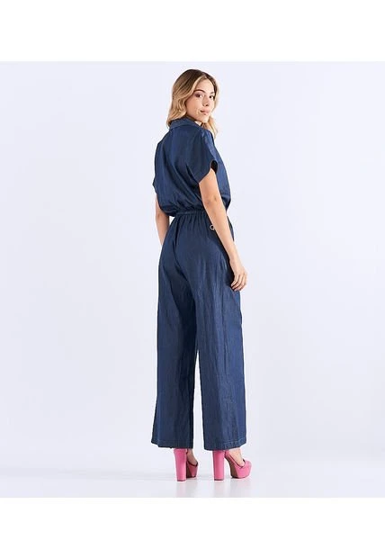 Descripción del producto: enterizo para mujer en chambray con mangas amplias y pantalon tipo palazzo derek