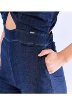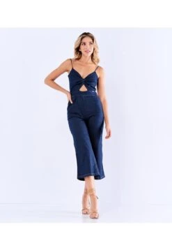 Descripción del producto: Enterizo para mujer en chambray confortable, blusa para anudar en parte de atrás y pantalón tipo culotte con proceso oscuro derek.