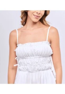 Descripción del producto: es un jumsuit con pantalon largo, escote recto y enresortado con un color solido y vibrante, disfruta de la comoidad y el mejor estilo en una sola prenda.