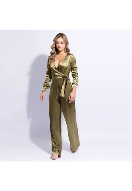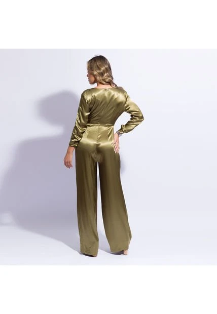 Enterizo largo manga larga en tela satinada.