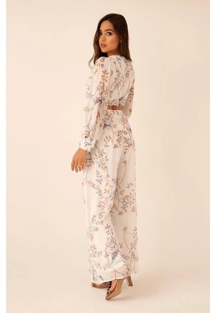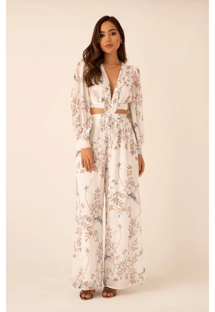 Escote en pico y detalle de abertura en la cintura.