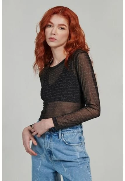 Camiseta para mujer cuello redondo, manga larga, estampado letras, en mesh con una silueta ajustada que se acopla a tu cuerpo, Esta prenda es perfecta para combinar con tus looks favoritos o simplemente para crear tu propio estilo