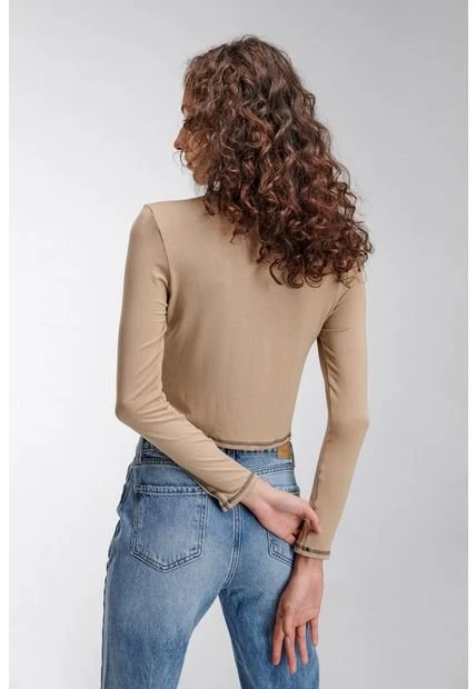 Camiseta para mujer, manga larga, unicolor, cuello redondo.