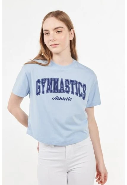 Camiseta manga corta para mujer básica, con estampado en frente estilo college.