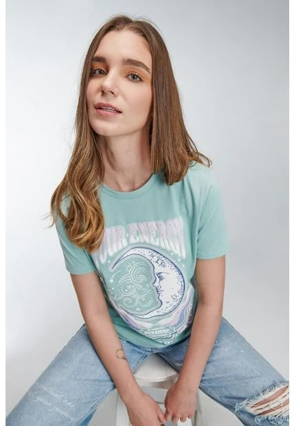 Camiseta manga corta para mujer básica, con estampado en frente.