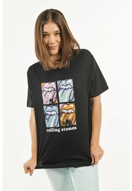 Camiseta para mujer cuello redondo negra cuenta con una silueta sutilmente holgada al cuerpo, hombros rodados, un estampado de The Rolling Stones en frente y mangas cortas. Luce como una verdadera rockstar combinando esta prenda con tus jeans Koaj favoritos para disfrutar de tus planes más casuales.