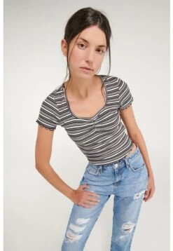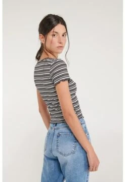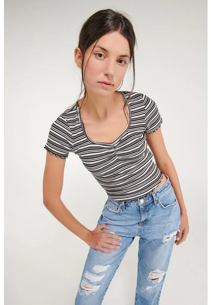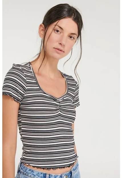Camiseta para mujer, cuello en v con recogido, manga corta