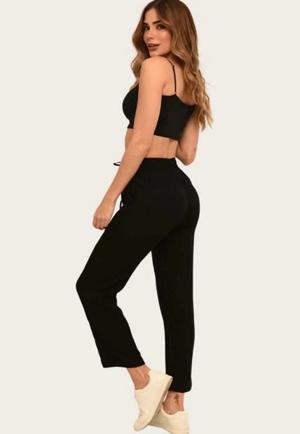 Pantalón en chalís fondo entero, pretina resortada, sesgo decorativo, pierna recta, corte decorativo en centro pierna.