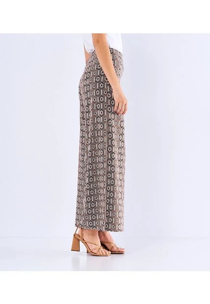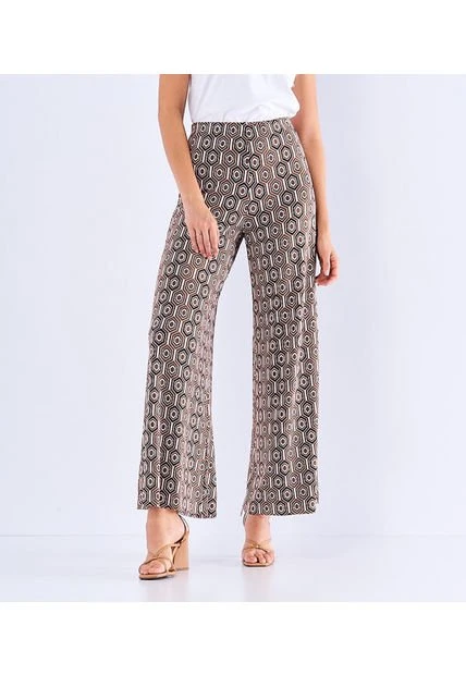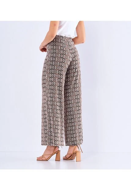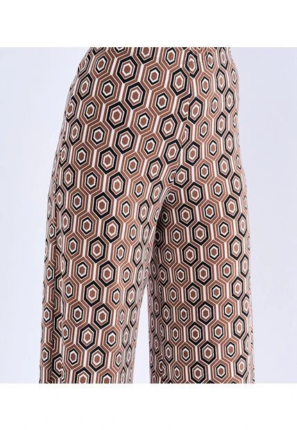 -Descripción:pantalón estampado geométrico tiro alto confortable, pretina elástica bota ancha una prenda cómoda y casual.
