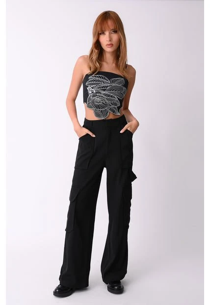 La modelo mide 1.74 cm y usa talla S