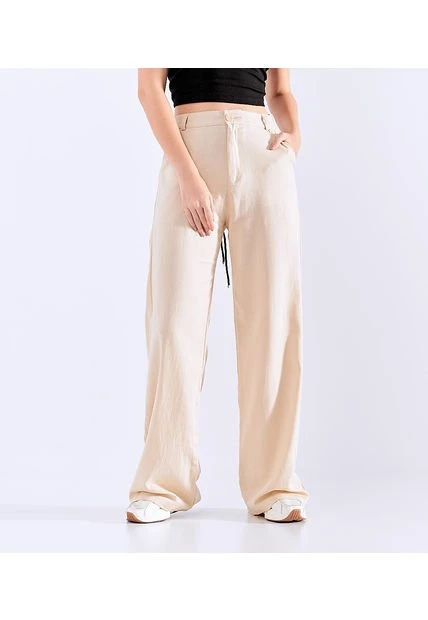 Descripción del producto: pantalon en lino para mujer con bolsillos funcionales, bota recta y tiro alto