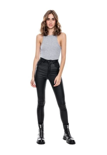 Pantal贸n high waist efecto cuero. Esta prenda est谩 hecha con el coraz贸n por manos Colombianas.
