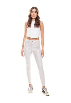 Pantalón high waist efecto cuero. Esta prenda está hecha con el corazón por manos Colombianas.