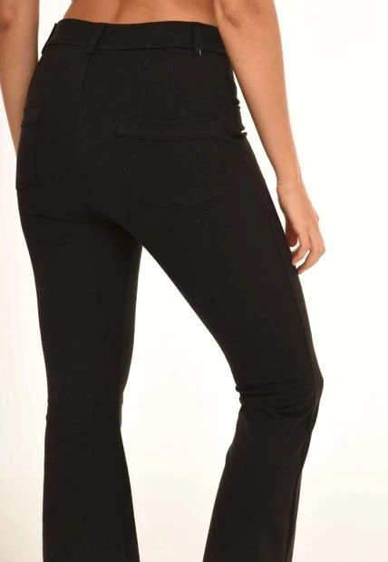 Pantal贸n en dril lycra fondo entero, pretina con pasadores y bot贸n, cierre frontal, imitaci贸n bolsillos en delantero y bolsillos parche en posterior, bota ancha.