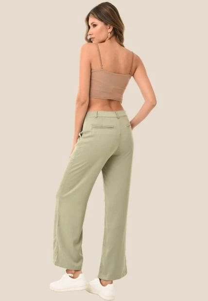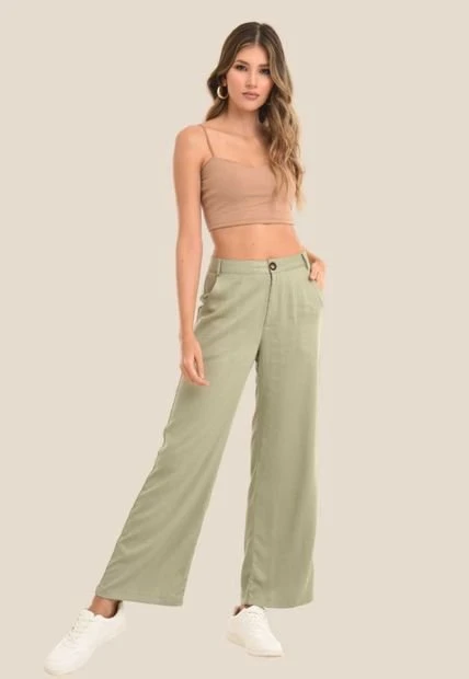 Pantal贸n palazzo en chal铆s fondo entero, pretina con bot贸n y cierre de ajuste, miniprenses, ajusta en cintura, amplio en bota y pierna.