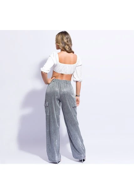 Pantal贸n cargo color plateado.