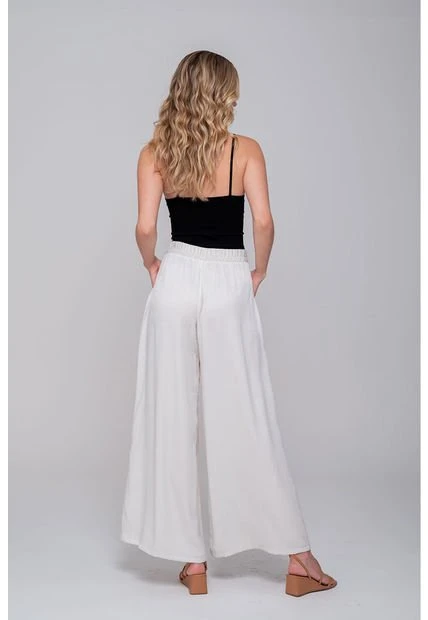 Pantalón palazzo con pretina lisa y enresortada, nido de abeja en parte trasera, tiene bolsillo parche en el frente y su silueta es amplia. Una prenda para outfit de oficina.