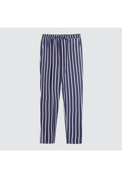 Pantalón para Mujer tipo jogger estampado lineas verticales, pretina encauchada con lazo. No dejar en remojo, lavar en agua fría separadamente, no usar blanqueador, no retorcer, secar a la sombra. Plancha tibia.