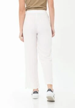 Pantalón en chalís fondo entero, silueta bolsa de papel, elástico en pretina y sesgo amarre en la misma tela, bolsillos parche, silueta amplia en cadera y pierna, canal y sesgo amarre en bota decorativa.