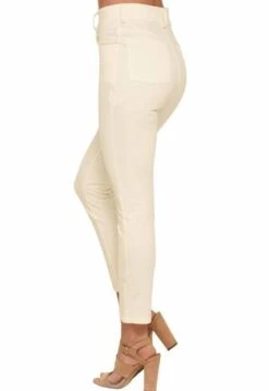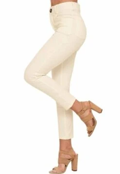 Pantal贸n en bengalina fondo entero, tiro alto, fit skinny, cinco bolsillos.