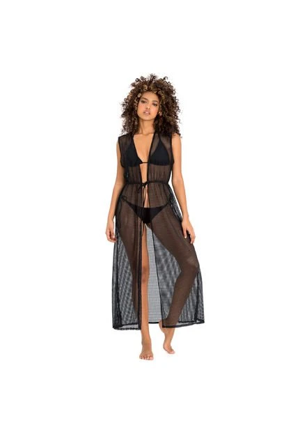 Salida de baño en silueta en malla · Diseño tipo vestido con anudador en cintura