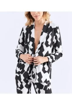 Descripción del producto: set de pantalón y chaqueta para mujer, diseño de pantalon con bolsillos funcionales en costados y delicados prendes en delantero. Chaqueta de solapa delagada, manga larga con bolsillos con tapa funcionales en delanteros. Elaborados en textil suaves con diseño de estampado bicolor