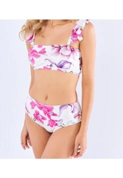 Descripción del producto: Traje de baño dama dos piezas. Panty alto con encauchado en centro trasero. Top tipo banda con tiras y bolero, copas removibles
