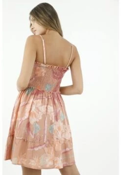 El fit de este vestido es un poco más ajustado en la parte superior mientras que su caída es más amplia. El resorte en la cintura le da más definición a la silueta; puedes usarlo también en strapless. Termina tu look con unas botas western.