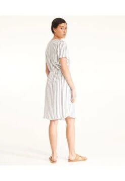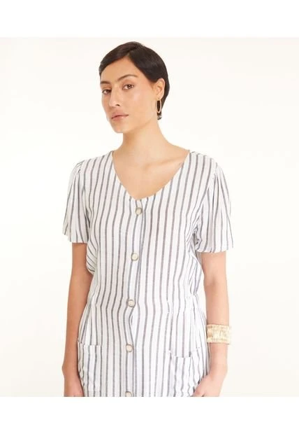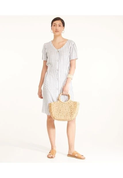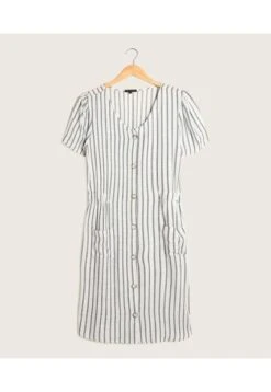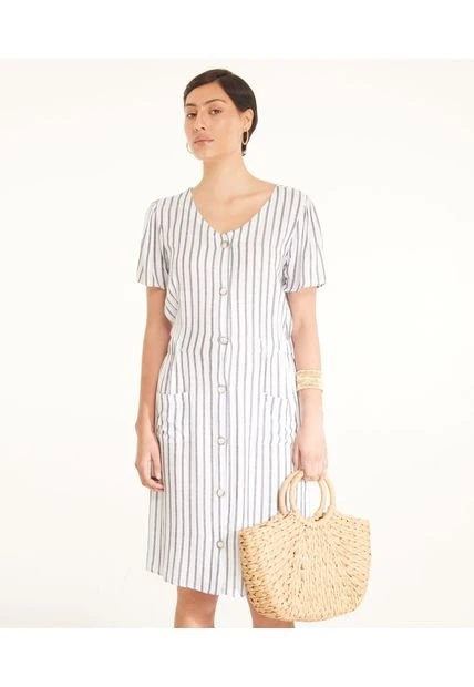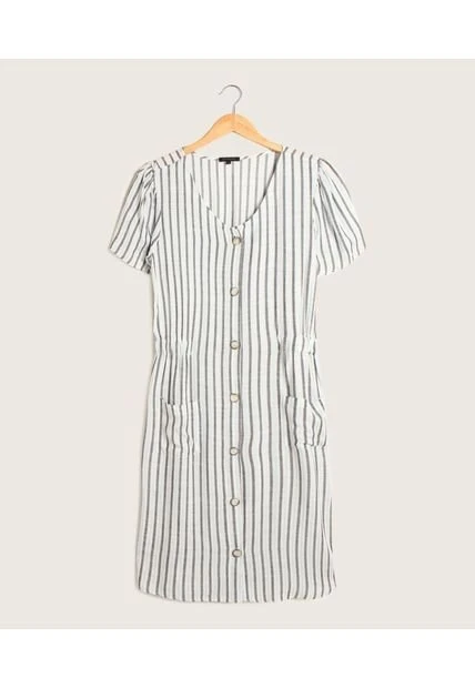 Vestido Preteñido, Cuello V, Con Bolsillos De Parche, Botonadura Y Elástico En Cintura, Mimosa Línea Moda