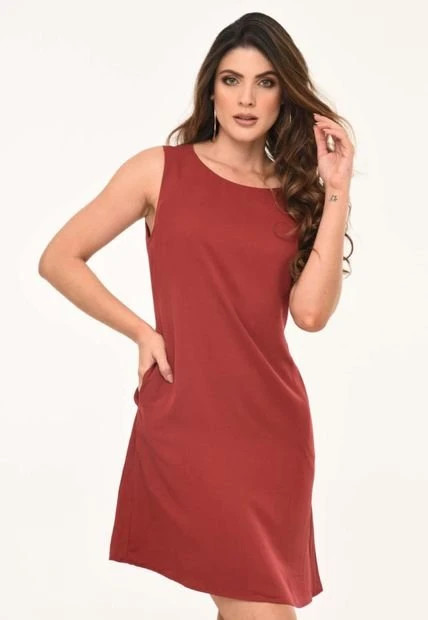 Vestido corto en chalis fondo entero, escote redondo, tira pitillo para anudar en espalda, elástico en cintura espalda, manga sisa, silueta semi-ajustada.