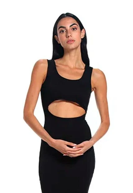 La silueta ceñida de este vestido abraza tu cuerpo, resaltando tu belleza natural para que te veas y te sientas fabulosa. El llamativo detalle de abertura en el torso añade un toque de coquetería al tiempo que mantiene un aspecto elegante. Combínalo con unos tacones y joyas llamativas para salir por la noche, o con tus sandalias favoritas y una chaqueta para un look más informal. Las posibilidades son infinitas con este vestido que no puede faltar en tu colección de vestidos largos para mujer.
