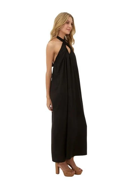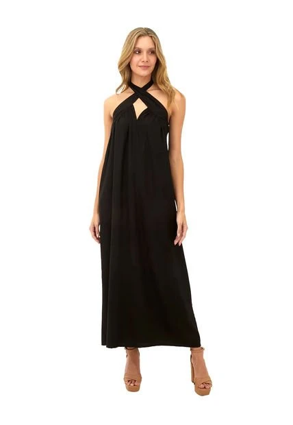 ¡el complemento perfecto para tu armario de verano! Este vestido está diseñado para que te sientas, cómoda y elegante a la vez. Con su silueta amplia, escote en V delante y tirantes cruzados que se anudan al cuello, este vestido es un auténtico espectáculo.