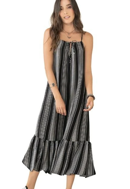 - Vestido Largo Para Mujer Bicolor Rayas Blancas .