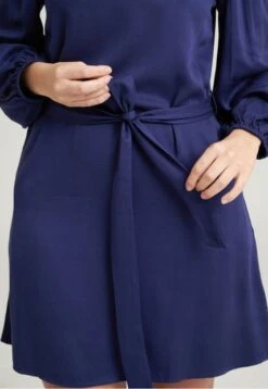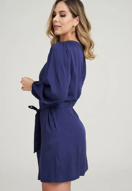 Vestido corto en chalis fondo entero, cuello ojal con botón y aberura en espalda, manga larga con recogido en hombro y elástico en puño, bolsillos laterales, cinturón en tela principal. RAGGED es una empresa competitiva y sólida que cuenta con más de 30 años de experiencia con su propuesta de diseño y moda,