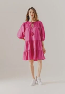 Un vestido para disfrutar del paisaje veraniego es más que necesario, sobre todo si es diseñado por Arkitect. El modelo incorpora un bordado de inspiración floral en el pecho que refleja estilo fresco y relajado para lucir con tu calzado favorito. Las prendas de las marcas propias del Grupo Éxito ( Arkitect, Bronzini y People) cuentan con el sello de moda sostenible; confeccionadas con buenas prácticas de producción y consumo responsable.
