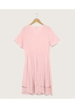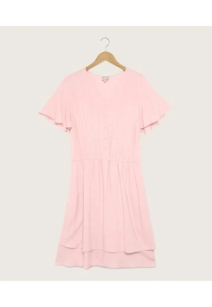 Vestido Cuello En V Con Boton Forrado En Plumeti