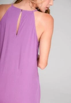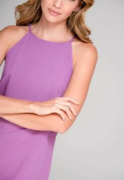 Vestido en chalis fondo entero, escote halter con gotera y botón de ajuste en espalda, linea A, bolsillos laterales. RAGGED es una empresa competitiva y sólida que cuenta con más de 30 años de experiencia con su propuesta de diseño y moda,